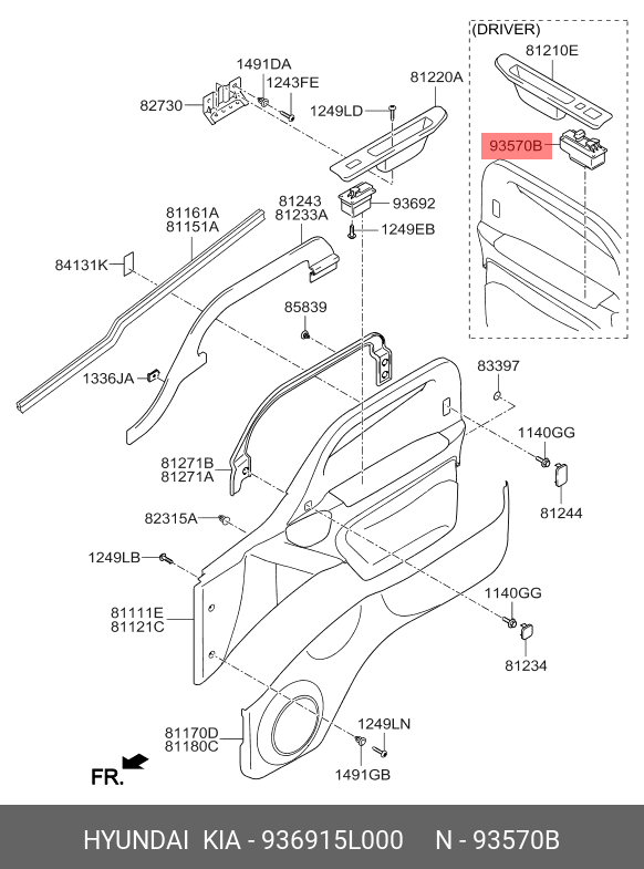 936915L000 HYUNDAI KIA Выключатель электростеклоподъемника HYUNDAI HD65,72,78 (10-) левый водит. OE