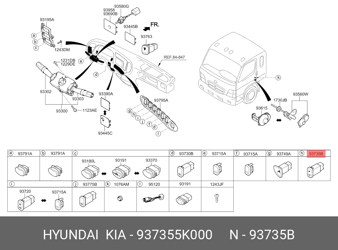 937355K000 HYUNDAI KIA Выключатель кнопка HYUNDAI HD65,72,78,County противотуманных фар OE