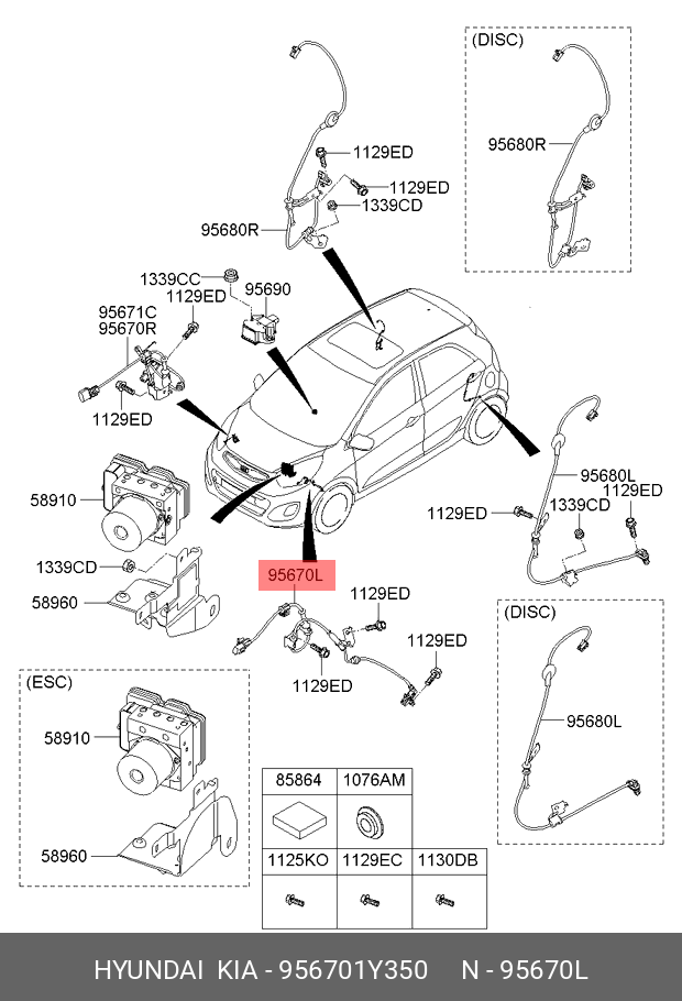 956701Y350 HYUNDAI KIA Датчик АБС KIA Picanto (12-) колеса переднего левого OE