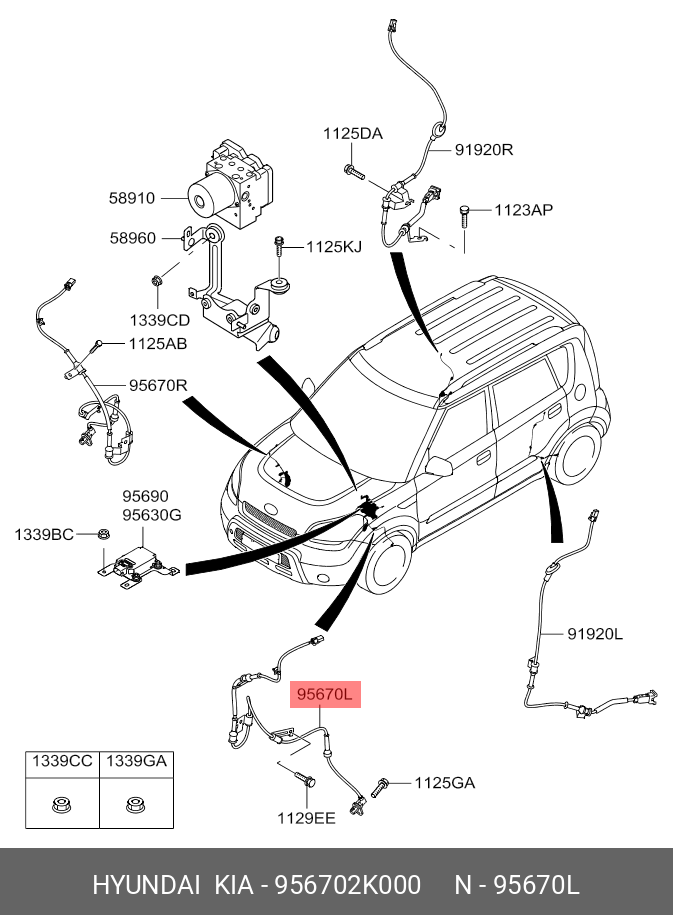 956702K000 HYUNDAI KIA Датчик ABS передний левый