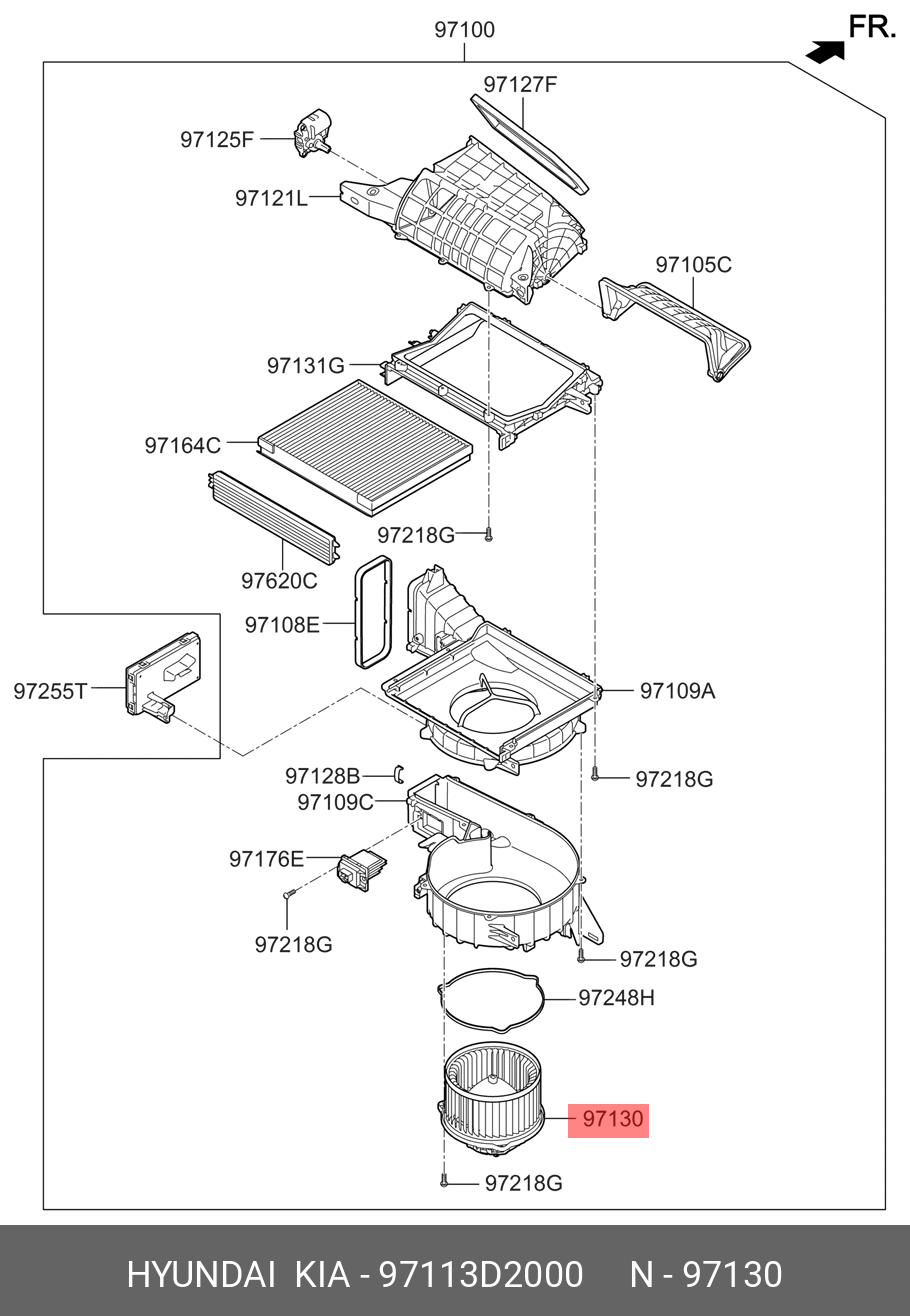 97113D2000 HYUNDAI KIA Мотор отопителя KIA K900 (18-),Stinger (17-) OE