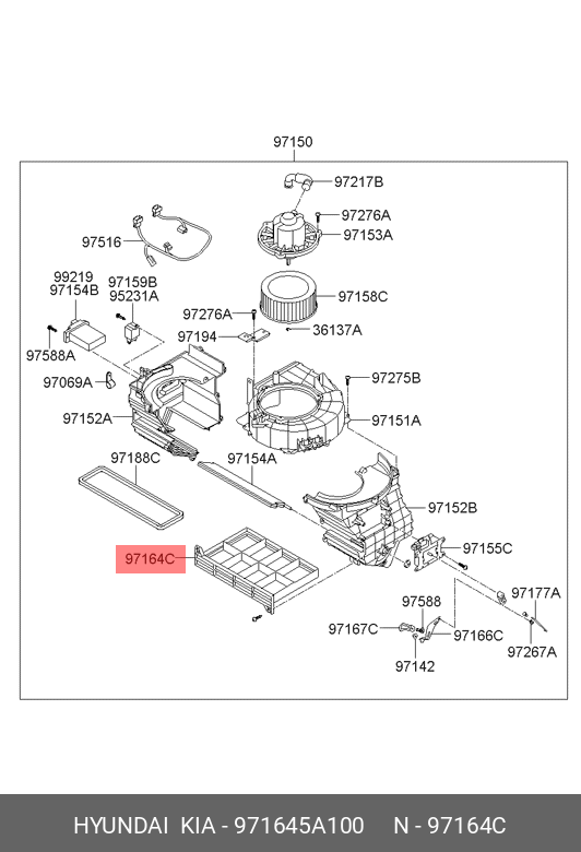 971645A100 HYUNDAI KIA Фильтр воздушный салона HYUNDAI County (сетка) OE