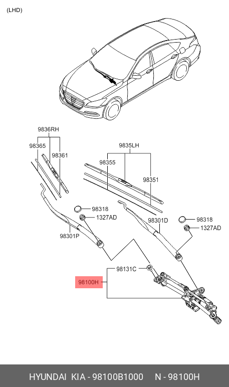 98100B1000 HYUNDAI KIA Трапеция стеклоочистителя HYUNDAI Genesis (14-) переднего в сборе OE