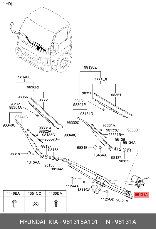 981315A101 HYUNDAI KIA Мотор-редуктор стеклоочистителя HYUNDAI HD65,72,78,County OE