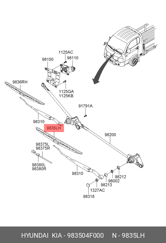 983504F000 HYUNDAI KIA Щетка стеклоочистителя HYUNDAI Porter 2 левая OE