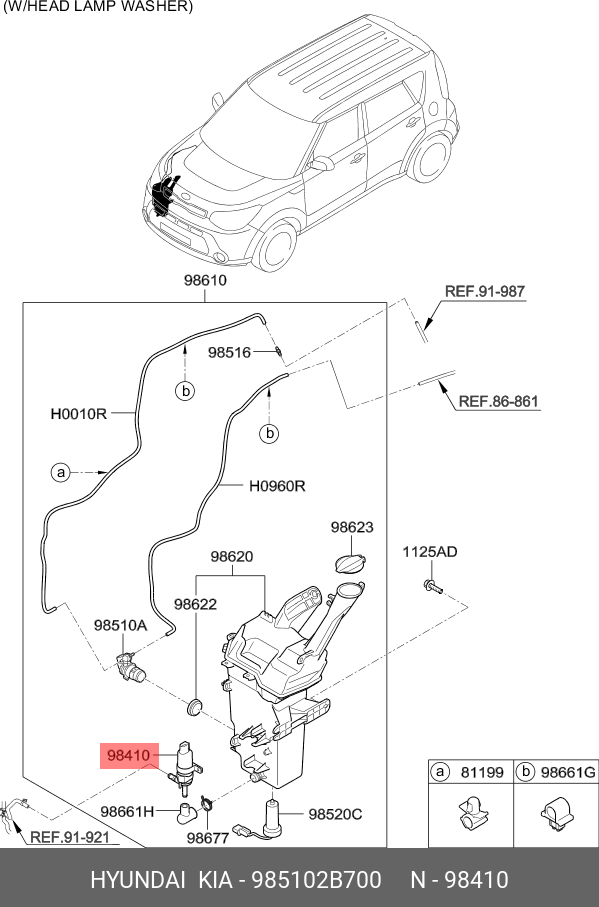 98510-2B700 HYUNDAI KIA Насос омывателя HYUNDAI Santa Fe (10-) KIA Sportage (10-) передних фар OE