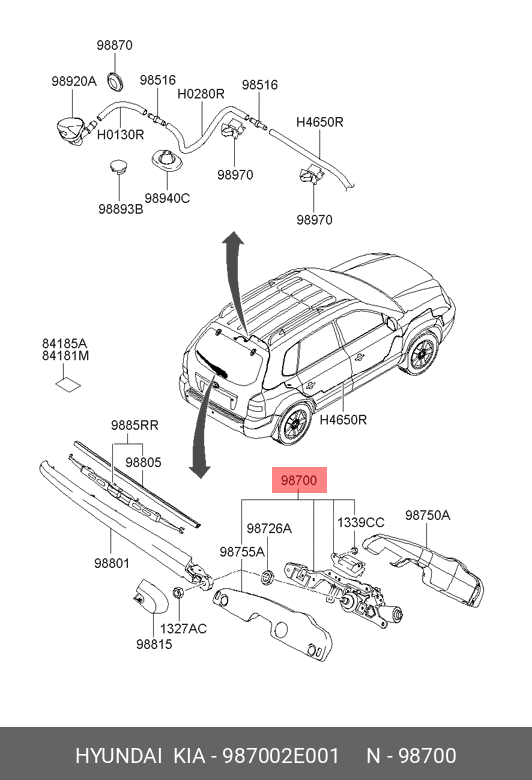 987002E001 HYUNDAI KIA Мотор-редуктор стеклоочистителя HYUNDAI Tucson заднего OE