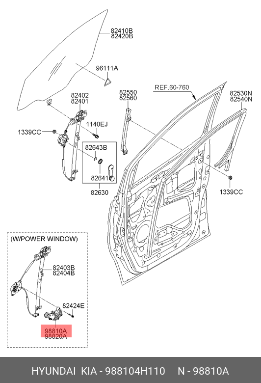 988104H110 HYUNDAI KIA Мотор-редуктор стеклоподъемника HYUNDAI Starex H-1 (07-) передний левый OE