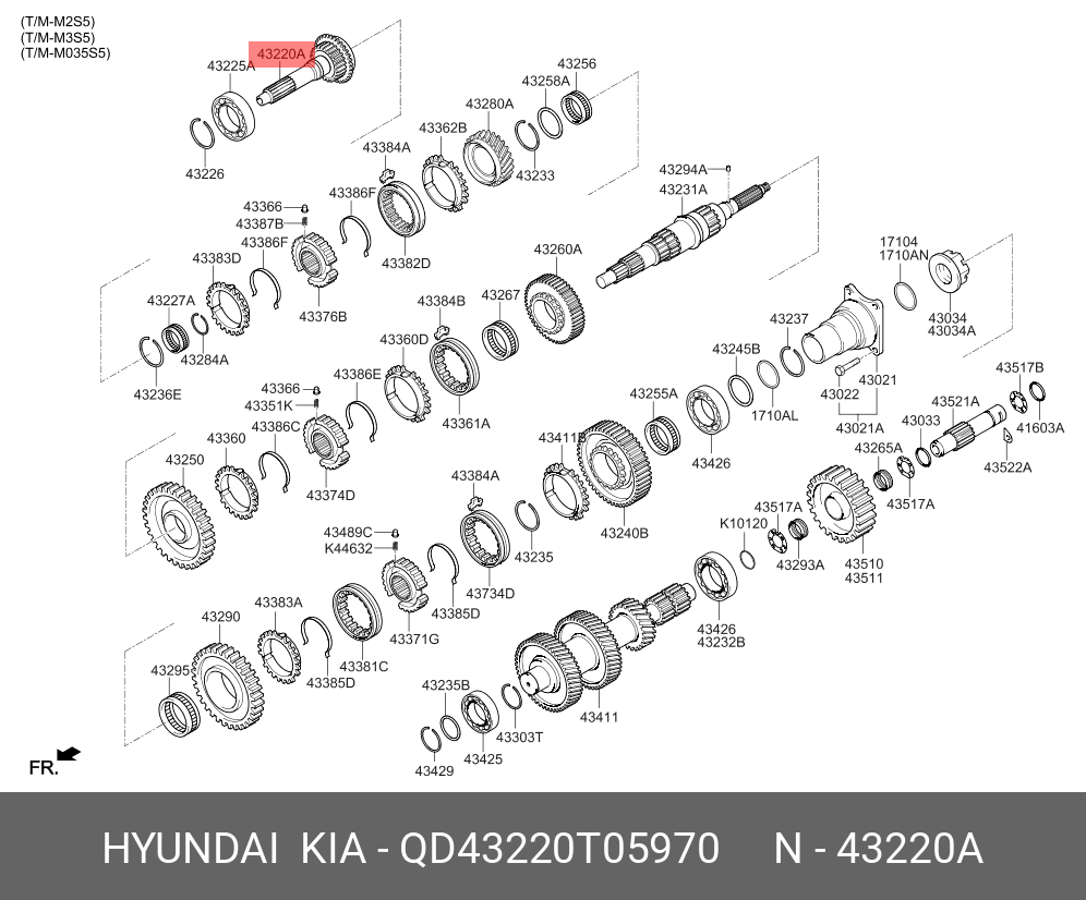 QD43220T05970 HYUNDAI KIA Вал КПП HYUNDAI HD65,78 дв.D4GA (M035S5) первичный OE