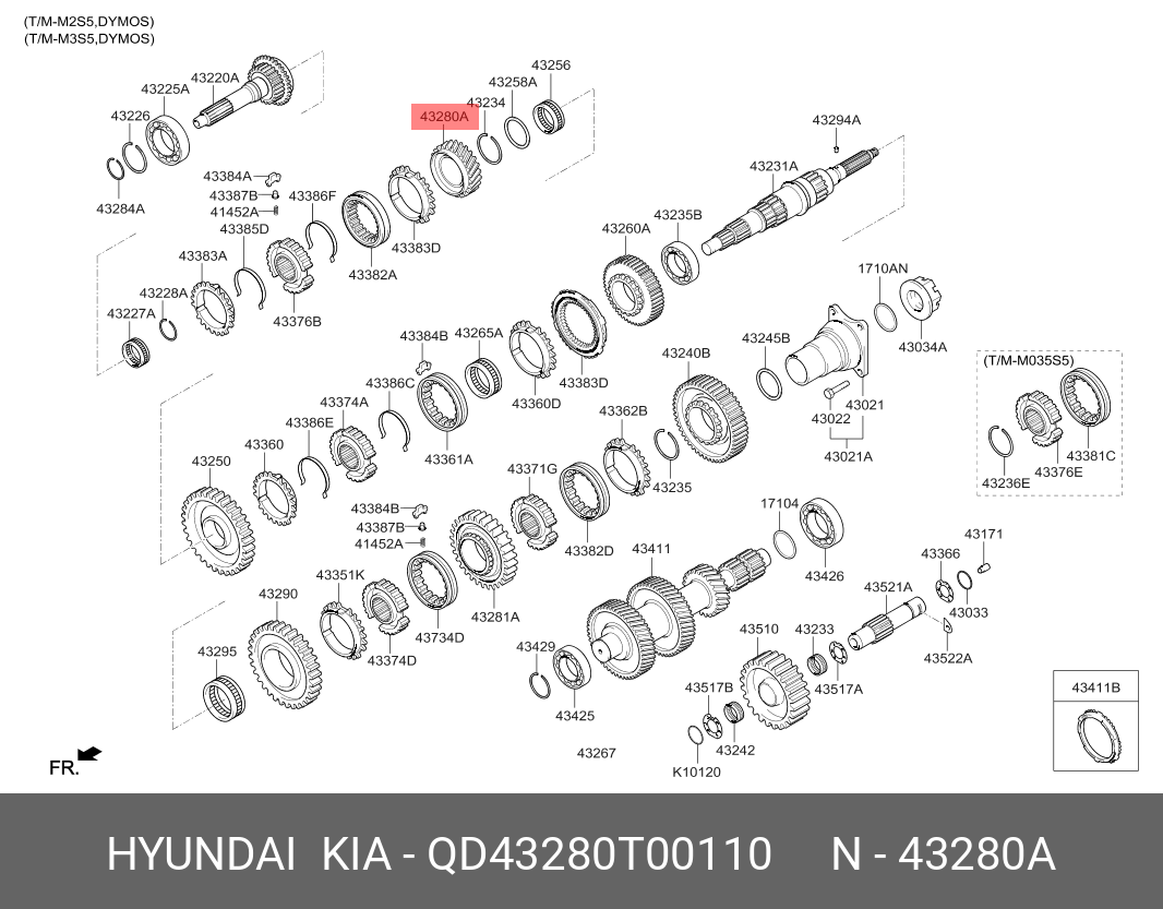 QD43280T00110 HYUNDAI KIA Шестерня КПП HYUNDAI HD65,78 (M035S5) вала вторичного 5-й передачи (17 зуб.) OE