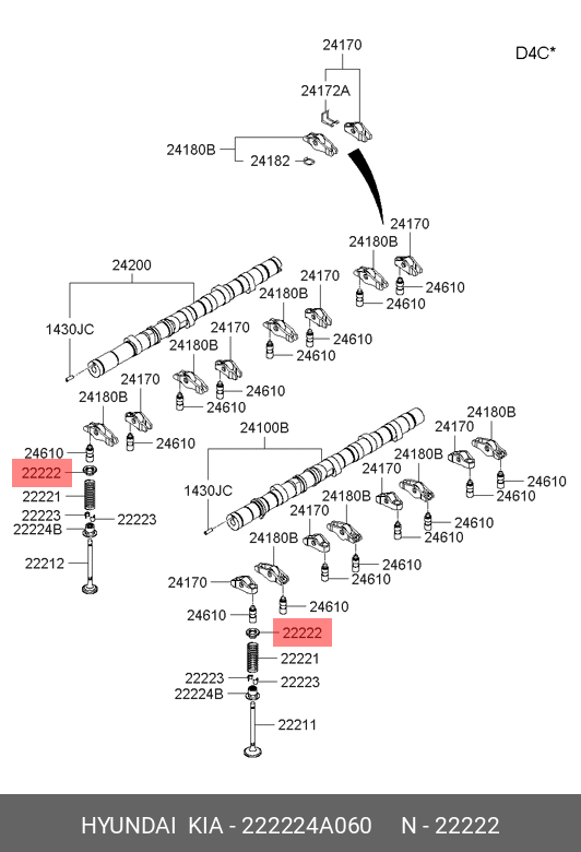 222224A060 HYUNDAI Тарелка пружины клапана впуск/выпуск D4CB (C8)