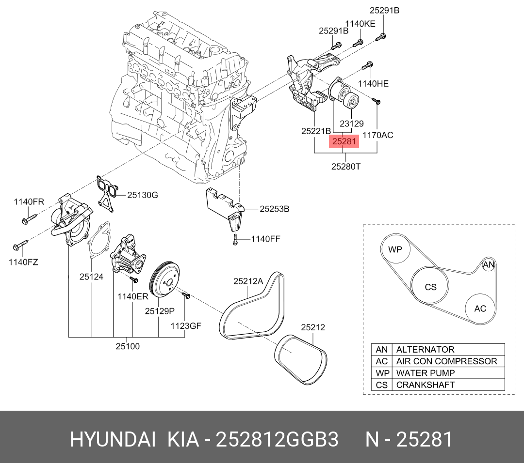 252812GGB3 HYUNDAI ролик натяжной c механизмом натяжения!\ Hyundai Santa Fe IV 2.4 18>