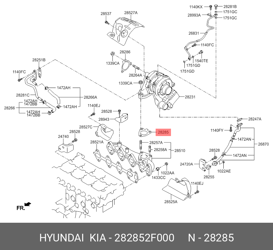 282852F000 HYUNDAI прокладка турбины!\ KIA Sportage/Sorento, Hyundai SantaFe/ix35