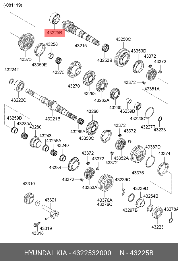 4322532000 HYUNDAI подшипник КПП! вторичного вала\ Hyundai Elantra 06>