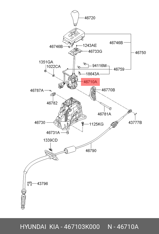 467103K000 HYUNDAI 467103K000 РЫЧАГ ПЕРЕКЛЮЧЕНИЯ ПЕРЕДАЧ