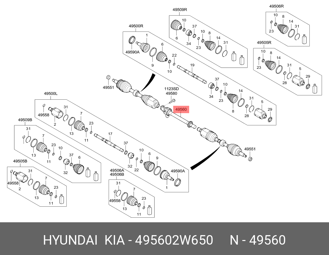 495602W650 HYUNDAI вал приводной! промежуточный\ Hyundai Santa Fe 12>