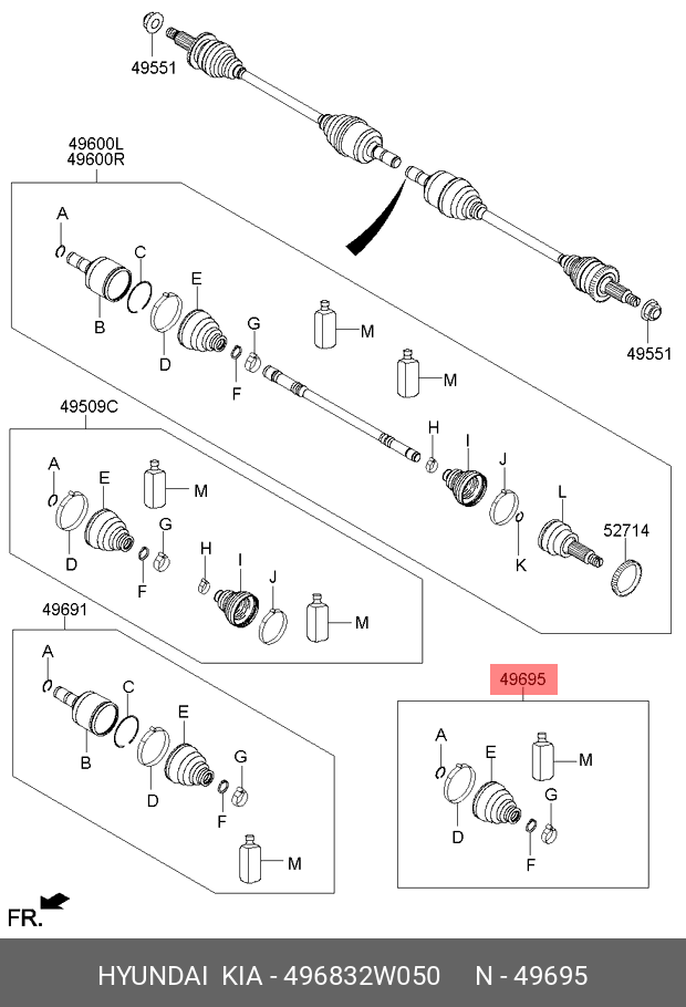 49683-2W050 HYUNDAI к-кт пыльника ШРУСа внутреннего!\ Honda Accord/Prelude/CRX/CR-V 1.5-2.3i 87>