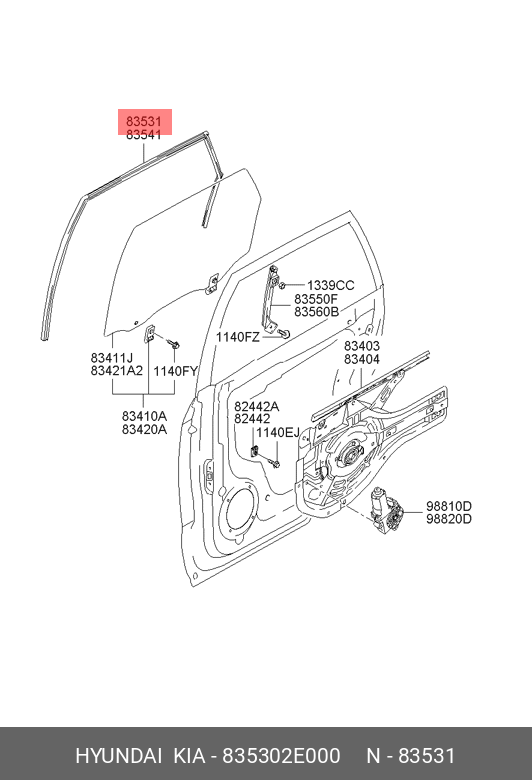 835302E000 HYUNDAI 835302E000 УПЛОТНИТЕЛЬ СТЕКЛА ДВЕРИ