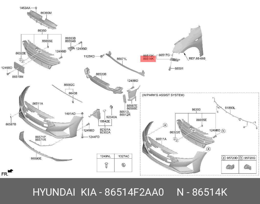 86514F2AA0 HYUNDAI Кронштейн (планка опорная) пер. бампера HYUNDAI Elantra 19 прав.