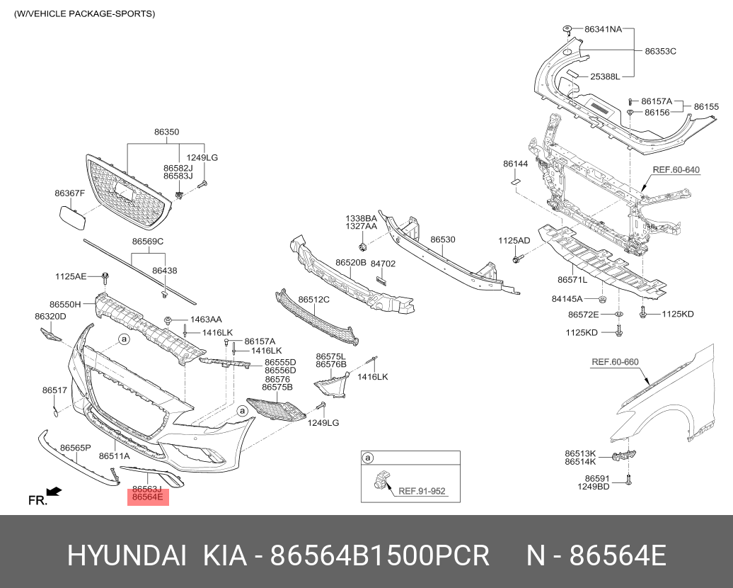 86564B1500PCR HYUNDAI МОЛДИНГ БАМПЕРА ПРАВЫЙ/CR PIECE ASSY-BUM