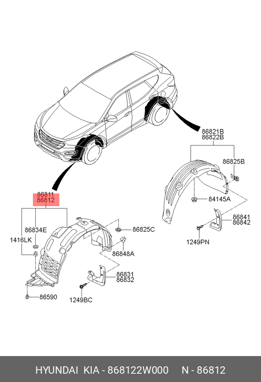 868122W000 HYUNDAI подкрылок передний правый!\ Hyundai Santa Fe 12>