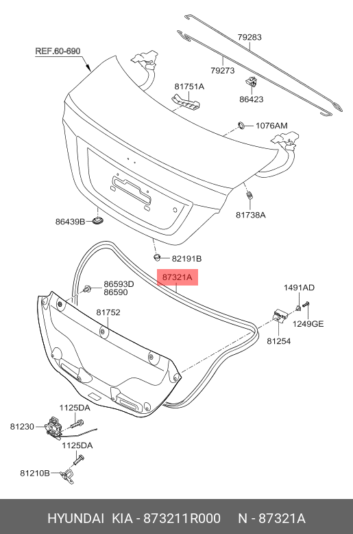873211R000 HYUNDAI Уплотнитель панели крышки багажника