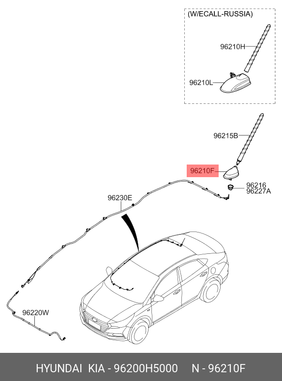 96200H5000 HYUNDAI 96200H5000 Антенна HYUNDAI Solaris (17-) штыревая OE