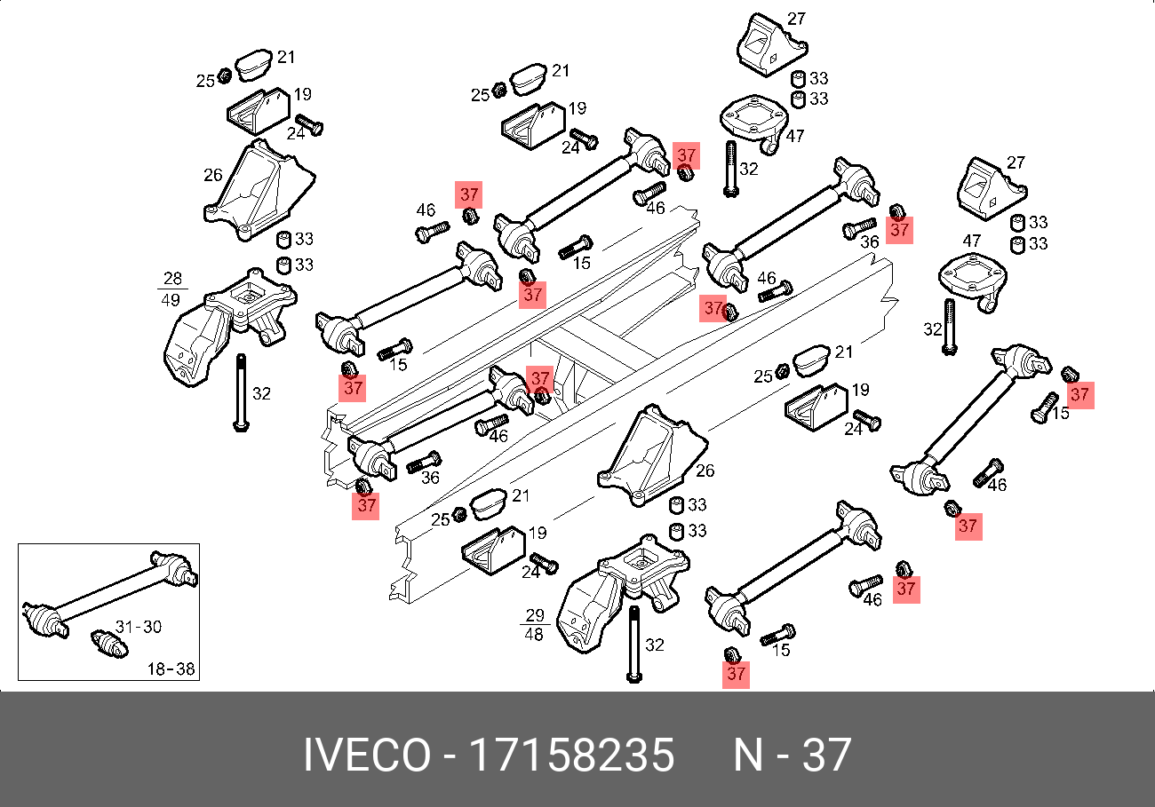 17158235 IVECO Гайка IVECO Trakker штанги реактивной OE