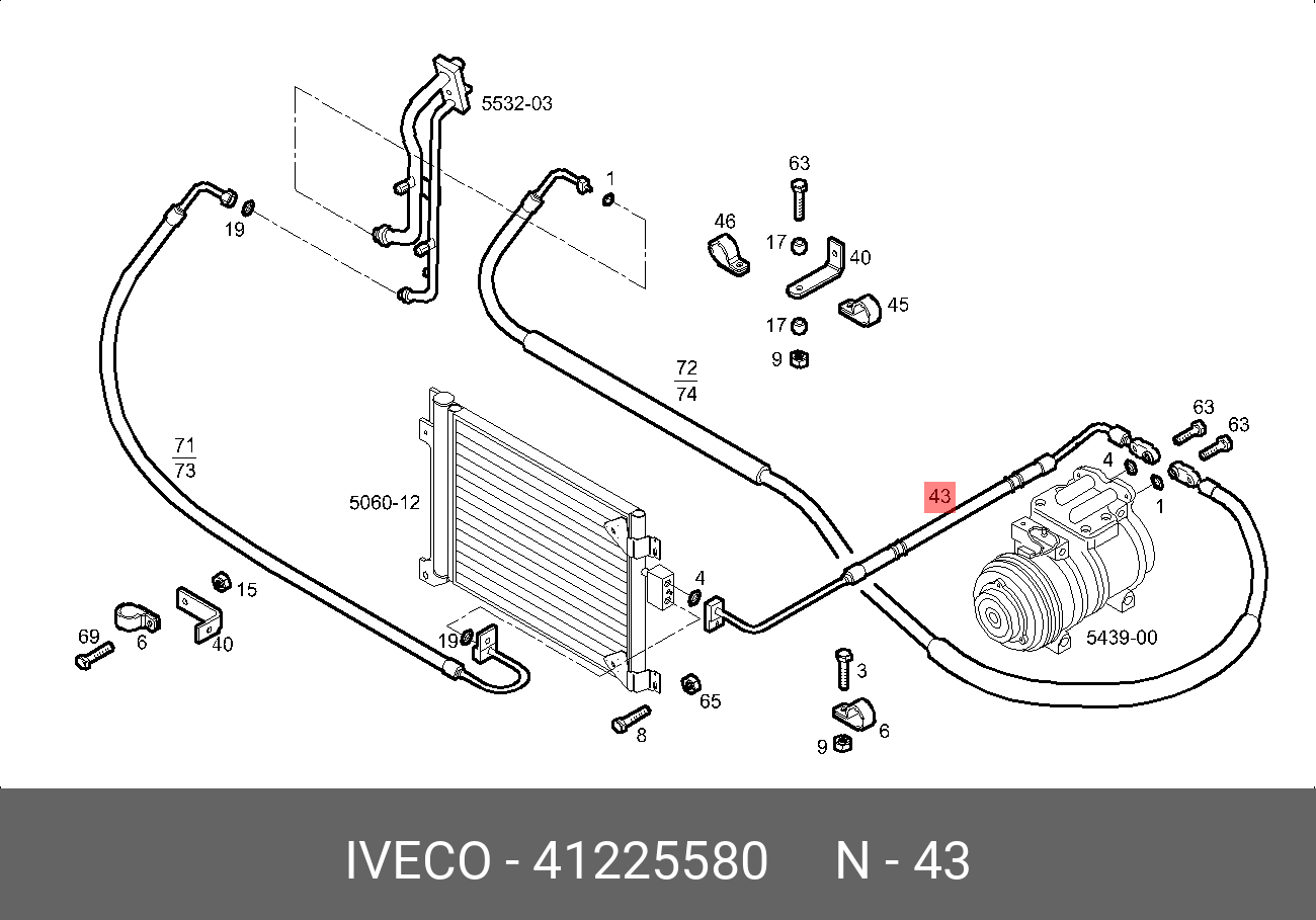 41225580 IVECO трубка кондиционера! от компрессора к радиатору\ IVECO STRALIS