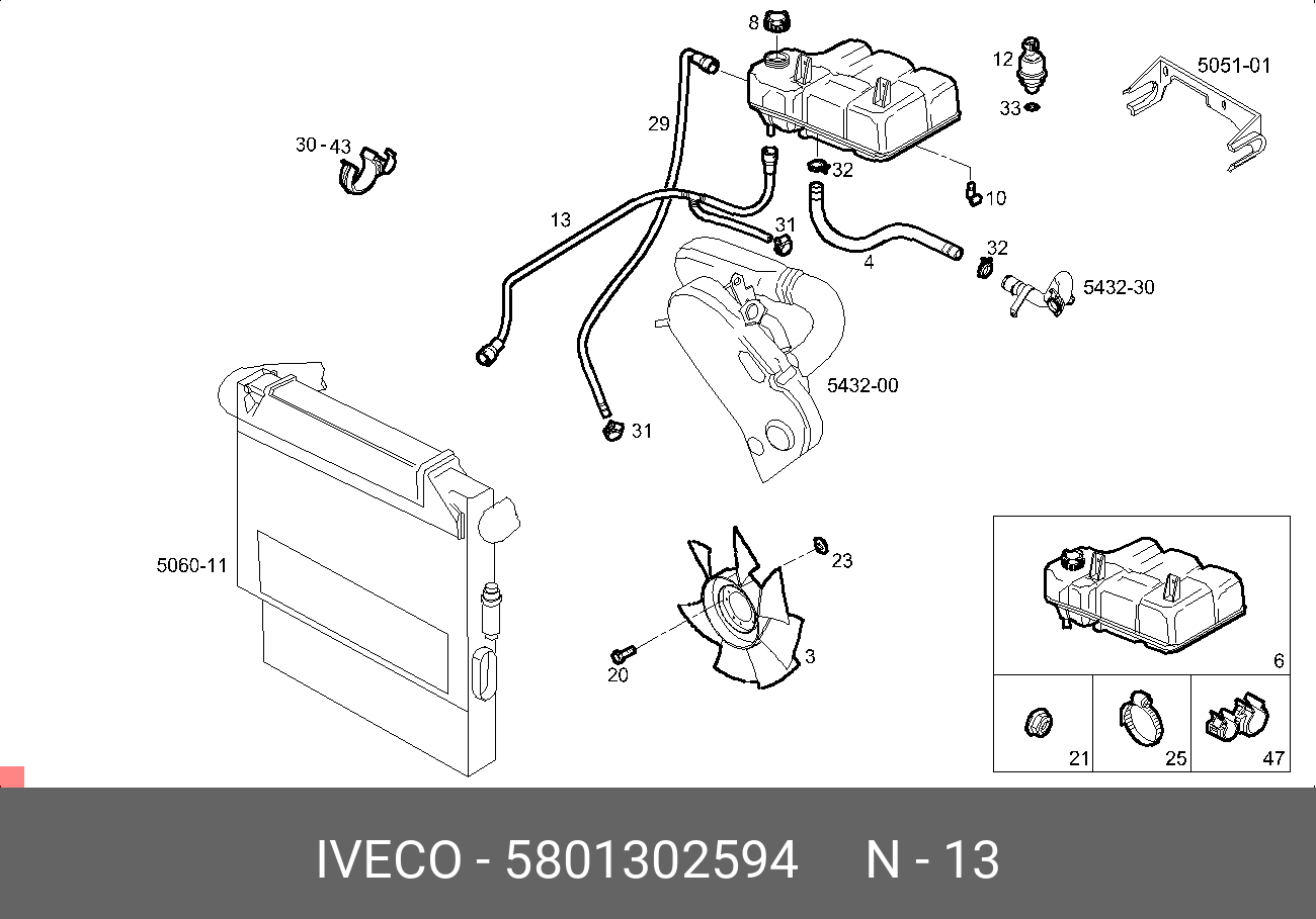 5801302594 IVECO трубка системы охлаждения!\ Iveco Daily V/VI 11-14