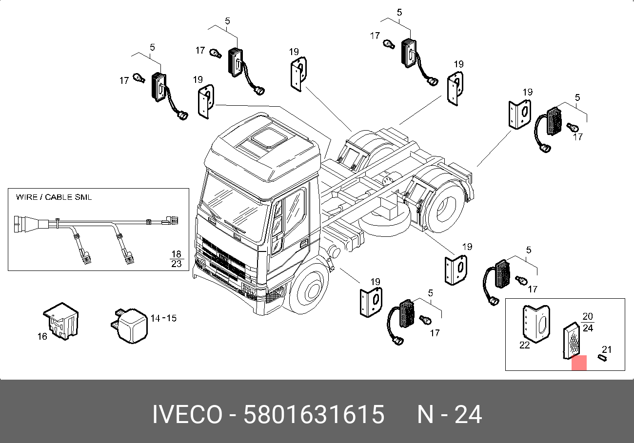5801631615 IVECO фонарь габаритный! желтый с уплотнением и разъемом SUPERSEAL LED\IVECO