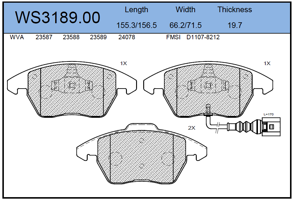| Наименование | Колодки тормозные дисковые | перед | WS318900 |