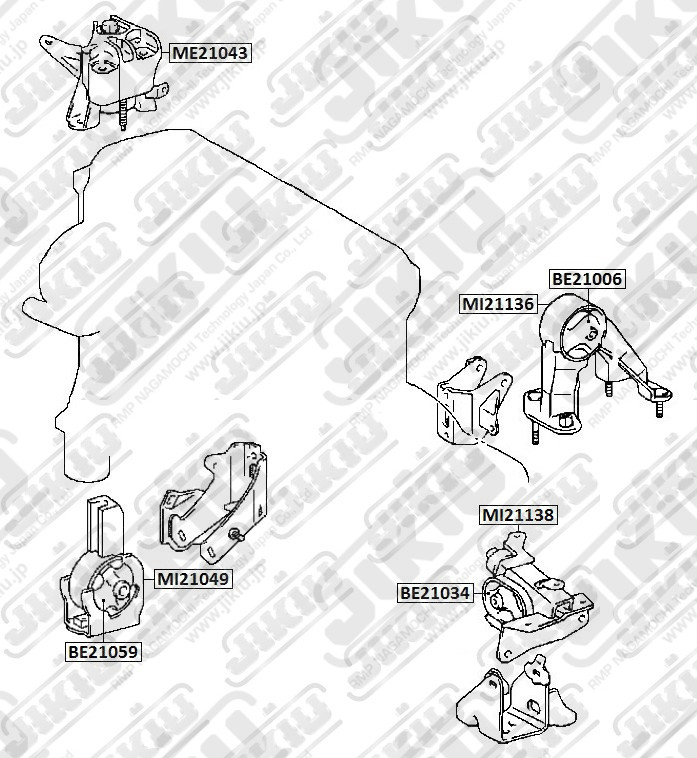 BE21006 JIKIU Катридж задн опоры двигателя TOYOTA WISH 03-09, IPSUM, PICNIC 01-09, ISIS 04-, 1