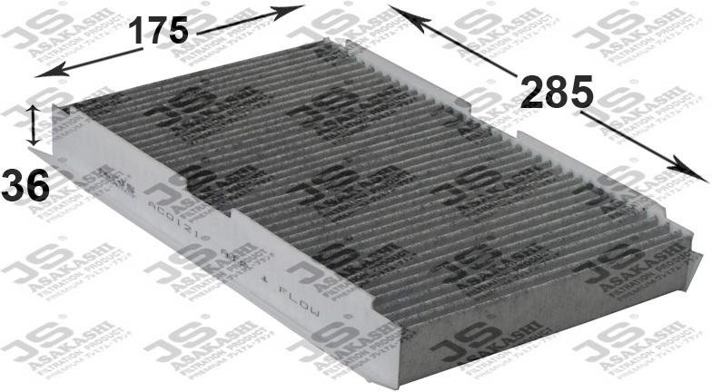 AC0121C JS ASAKASHI Фильтр салонный угольный PEUGEOT 308 2,0 2007 - CITROEN C3 PLURIEL 1,6 2002 -