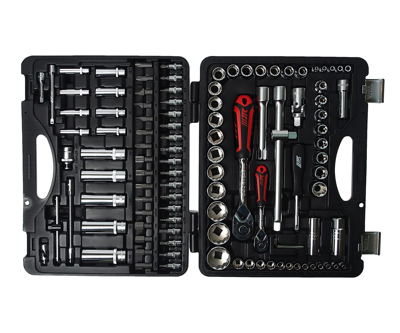 JTC-T110B-B72 JTC TOOLS Набор головок торцевых,бит и бит-головок 1/4",1/2" 12-гранных 110 предметов в ке