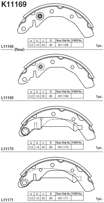| Наименование | Колодки тормозные барабанные DAEWOO MATIZ K11169 |