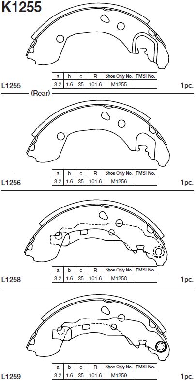 | Наименование | Колодки тормозные барабанные NOTE,MICRA K1255 |