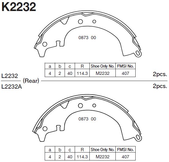 | Наименование | Колодки тормозные барабанные K2232 |