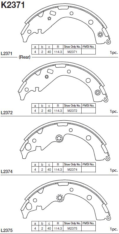 | Наименование | Колодки тормозные барабанные K2371 |