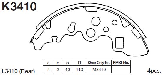 K3410 MK KASHIYAMA Колодки тормозные барабанные Mazda Bongo, Nissan Vanett 1.8-2.2 99-07 K3410
