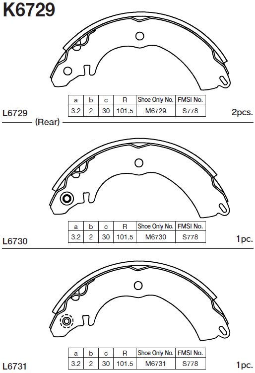 | Наименование | Колодки тормозные барабанные Mitsubishi Lancer Cedia CS,CT 00- K6729 |