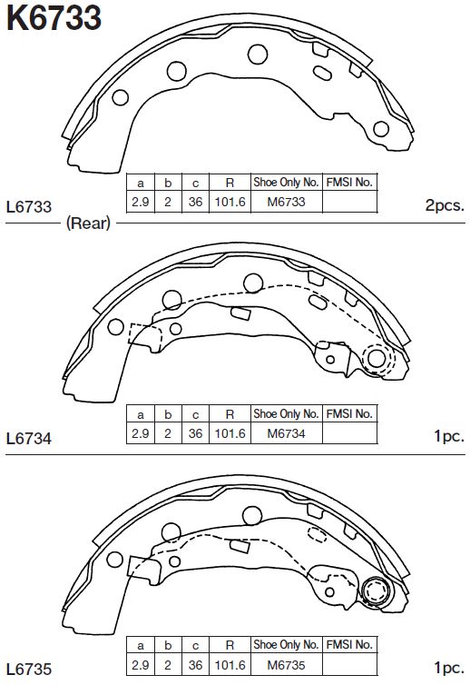 K6733 MK KASHIYAMA K6733-01 4059.00 !колодки барабанные\ Mitsubishi Space Star 1.3i-1.9Di без ABS 9