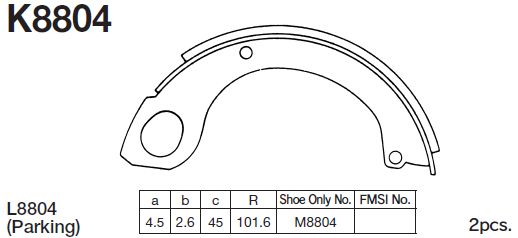 | Наименование | Колодки тормозные барабанные K8804 |