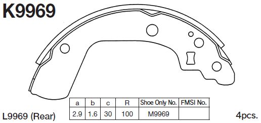| Наименование | K9969-01 колодки тормозные! барабанные\ Suzuki Swift 1.3/1.5/1.5DDiS 05> |