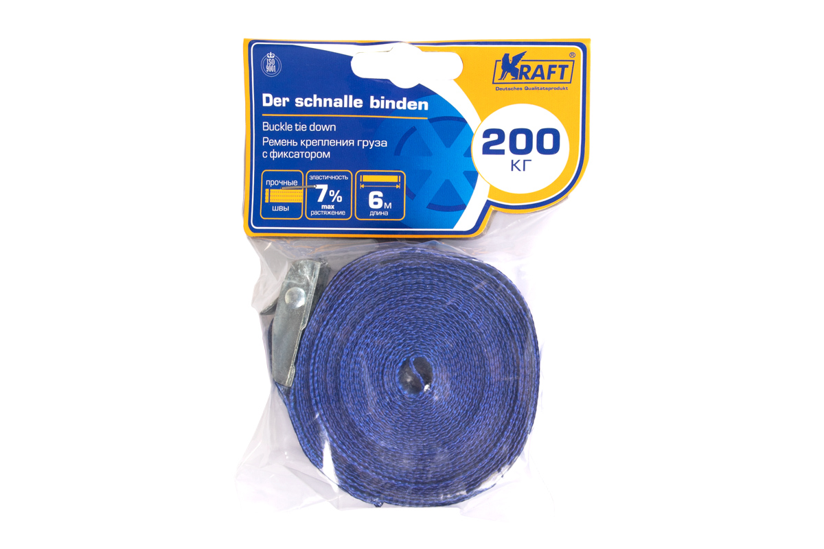 KT800201 KRAFT Стяжка крепления груза 0.2т 6м-25мм (полиэстер) с фиксатором KRAFT