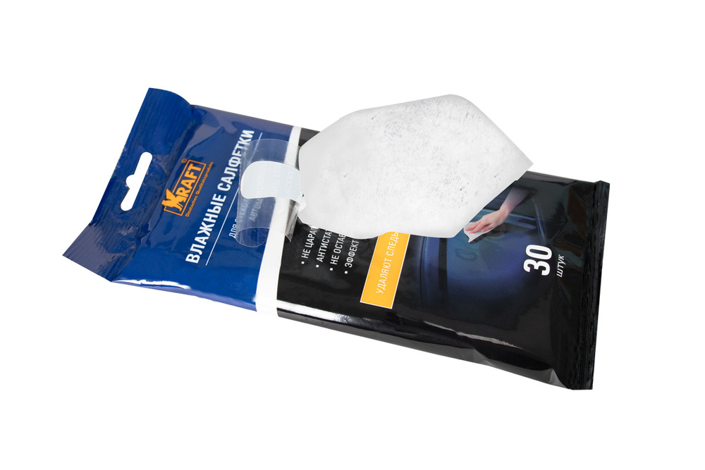 | Наименование | Салфетка влажная для очистки стекол в мягкой упаковке 30шт. KRAFT |