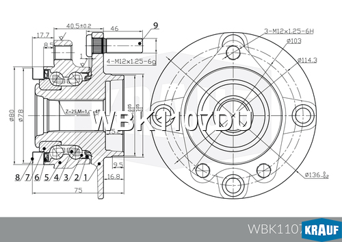 WBK1107DU KRAUF Ступица в сборе NISSAN [перед, Kit] Tiida (C11,SC11X)/Bluebird Sylphy II (G11)/C