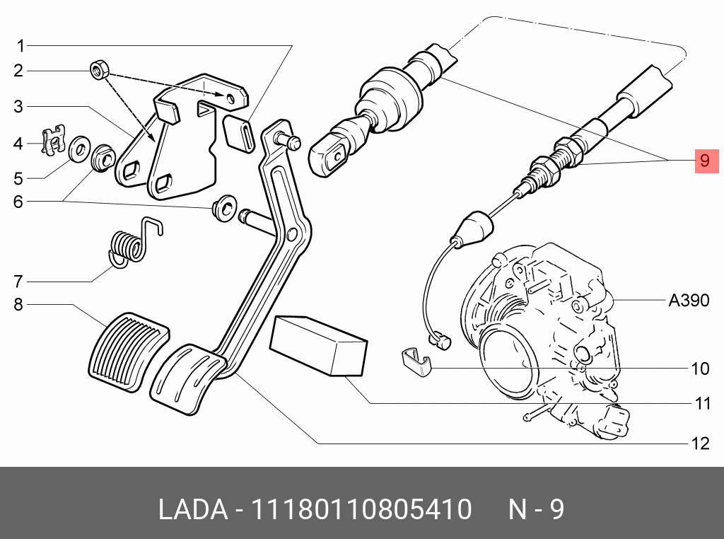 11180-1108054-10 LADA VAZ Трос акселератора ВАЗ-1118 в сборе АвтоВАЗ