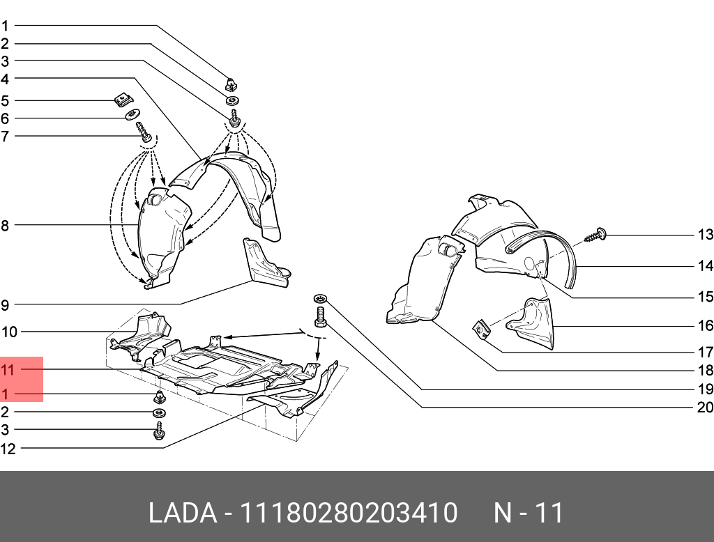 11180-2802034-10 LADA VAZ Брызговик ВАЗ-1118 двигателя средний АвтоВАЗ