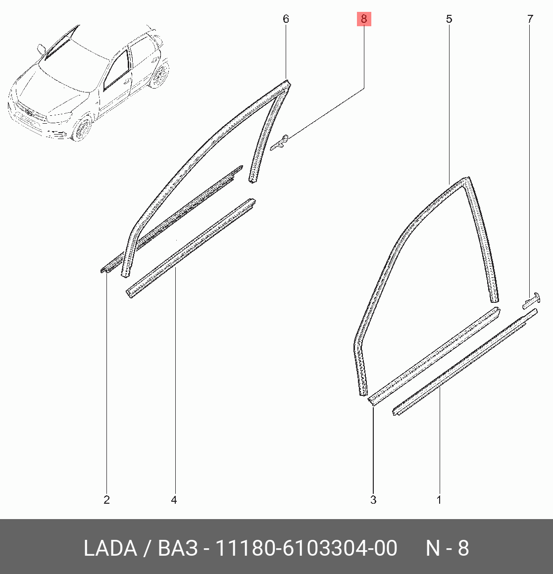 | Наименование | облицовка уплотнителя опускного стекла передней двери!\ Lada 11 |